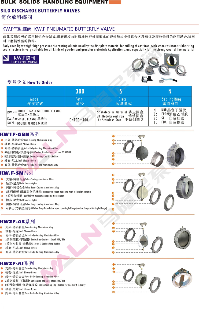 V1FS-100气动水泥蝶阀、KW1F-100气动粉体蝶阀概述: